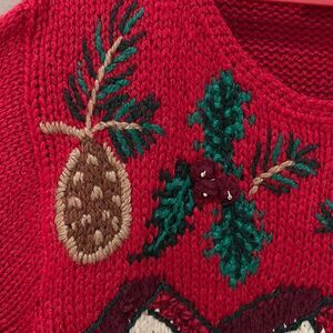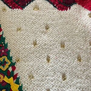 This is a heavyweight vintage Christmas Sweater with embellishments and hand knit Christmas Tree on the front. Measurements in photos. There are a few beads missing so please see the last 3 photos—not obvious in casual wear but wanted to point out. Ramie/acrylic