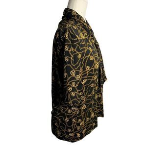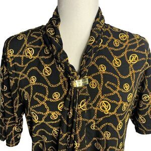 Vintage Adrienne Vittadini Stretch Knit Blouse S Black Scarf Neck Short Sleeves