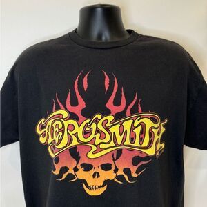 Turn heads and showcase your rock 'n' roll spirit with this Vintage Aerosmith Graphic Band Tee! Featuring the iconic band’s name set against a striking flames background, this shirt is a must-have for any true Aerosmith fan. Made from soft, high-quality cotton, this vintage tee combines comfort and style, making it perfect for concerts, casual outings, or lounging at home.