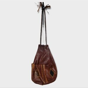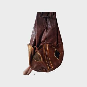 Vintage African Brown Leather Bucket Bag Drawstring Bag