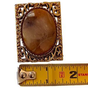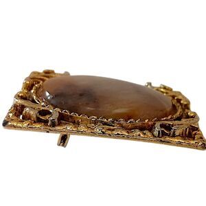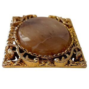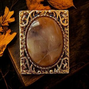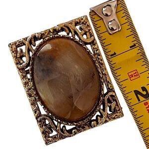 Vintage Agate Jasper Ornate Brooch Pin Pendant Victorian Art Deco Gold Tone. Condition is pre-owned and vintage. The stone is either jasper or agate. Can be a brooch or pendant. Unbranded. Measures ABOUT 2" x 1.5". Please see all photos for detailed condition.