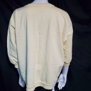 Vintage Ala Wishes yellow half-sleeve sweatshirt with three brown teddy bears on it wear blue and red cowboy hats with red ribbons tied around their necks.