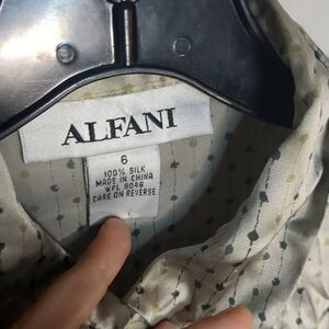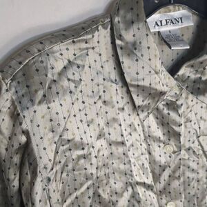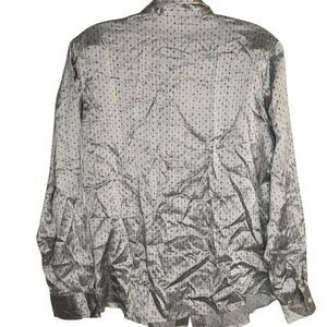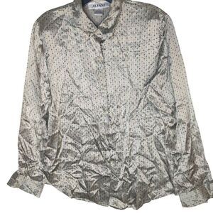 Vintage Alfani Green Gray Polka Dot Green 100% Silk Button Front Women's Small 6