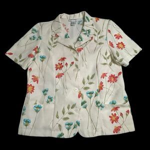 Vintage Alfred Dunner Short Sleeve Cream Floral Jacket