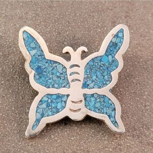 Vintage Alpaca silver crushed turquoise butterfly brooch.