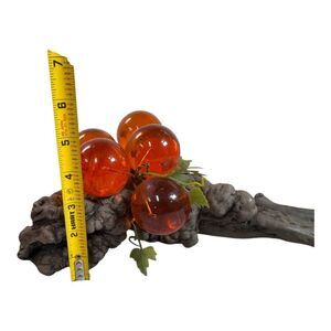 A striking mid-century decorative piece featuring amber lucite grape clusters on natural driftwood. Adds a touch of vintage sophistication to your decor.
