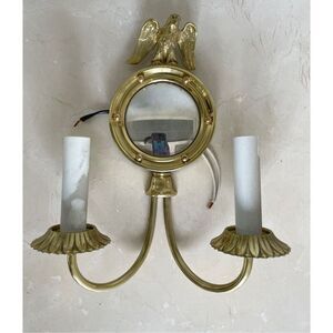Vintage American Brass Eagle Convex Mirror Two Arm Wall Sconces Federal