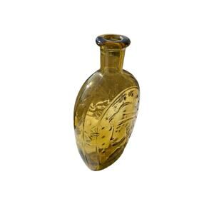 Vintage,American Eagle Decanter ,Lady Liberty 8 3/4''Golden Yellow, Bicentennial Flask.The bottle features embossed images, of an American eagle and the sailing ship Vintage Amber Glass Bottle, American Eagle Decanter, Lady Liberty Head, Arrows in The Tallons, Excellent Condition, Amber Glass 8 3/4 “ . No chops of cracks . Great for any home Decor .
