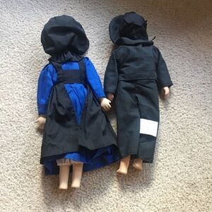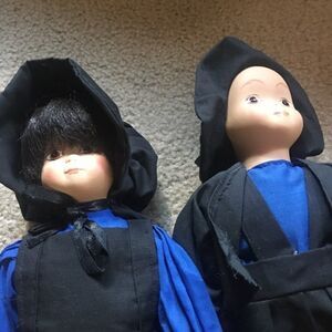 Vintage Amish Porcelain dolls set of two one boy and one girl