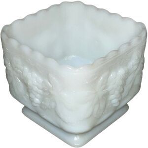 Vintage Anchor Hocking Harvest Grape White Milk Glass Square Planter Vase Bridal