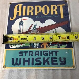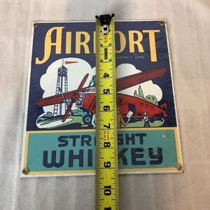 Vintage Ande Rooney Porcelain AIRPORT STRAIGHT WHISKEY Advertising Sign Airplane
