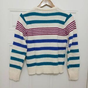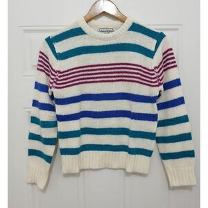 Vintage Andrew st john womens small blue green stipe crewneck sweater