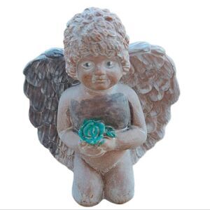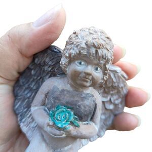 Vintage Angel Baby With Flower Small Statue Sculpture