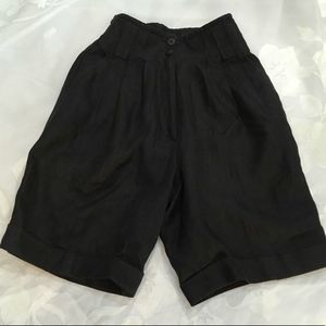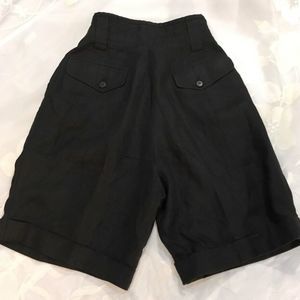 Vintage Ann Taylor high waisted black linen walking shorts. In excellent preowned condition. Cuffed hem, side pockets and back buttoned pockets, pleated front with zip and button closure. Measures 20 1/2 inches long from waist to hem. 24 inch waist. Dry clean. Size 6.