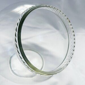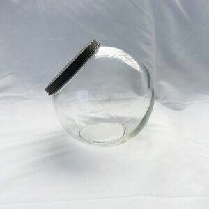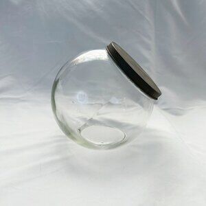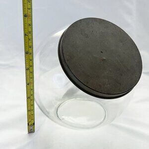 Vintage/Antique Glass Candy Jar with Lid. We don't know the exact age, but believe the time frame is somewhere between the late 1800's to the 1940s. So it is definitely vintage and very likely antique. Lid sits on opening - not a screw lid. Glass has a seam on the sides. There is also a bullseye pattern in the glass in the very back at the bottom. Some bubbles in glass from manufacturing which adds character to the piece. Gently used, in overall excellent condition. The lid has some discoloration spots due to age. See all photos for condition details and dimensions.