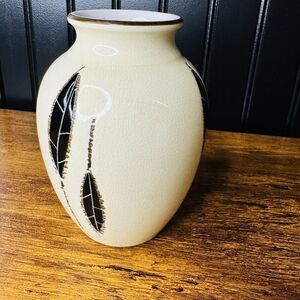 Vintage Antique Italian Vase Italy Textured Off White Black Leaves MCM