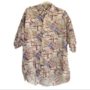 Vintage Arrow Tan Fish Angler Printed Button Down Tan Short Sleeved Shirt XL
