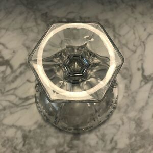 This glass is in excellent pre-owner condition. There are a few scratches but nothing unusual for a glass of this age. The pattern is etched into the outside of the glass. It is perfect for desserts or shrimp cocktail. It’s about 4”