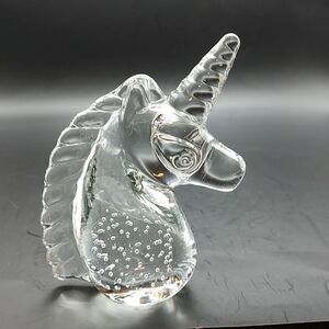 Vintage Art Glass Unicorn Paperweight with controlled bubbles. Smooth bottom. Perfect paperweight for a work desk or for the magically inclined!!