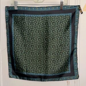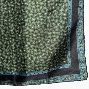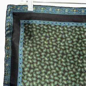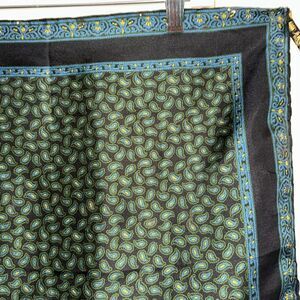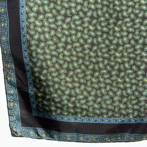 Vintage Ashear Green, Blue, Black & Gold Paisley Patterned Silk Square Scarf