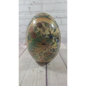 Vintage Asian Satsuma Pracock Porcelain Egg