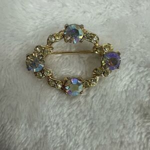 Vintage Aurora Borealis Rhinestone Crystal Wreath Brooch Pin Clear Sparkle Glam