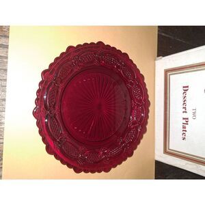 Vintage Avon 1876 Cape Cod Ruby Red Cranberry Pressed Glass Dessert Plates Set