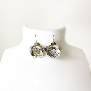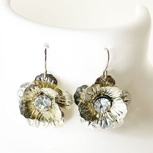 Vintage Avon Earrings retro flower Silver tone rhinestone 70s 80s glam MCM