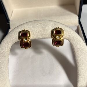 Gold tone with simulated ruby red stones.