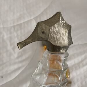 Check out these vintage seahorse perfume bottle. Small one still completely full. Great addition to any beach motif.