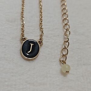 Avon SHB necklace featuring a black "J" pendant, paired with 3 sets of earrings.