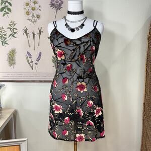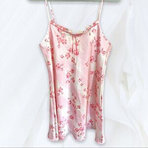 Pastel pink chemise decorated with small magenta florals throughout, tagged 80’s Avon.