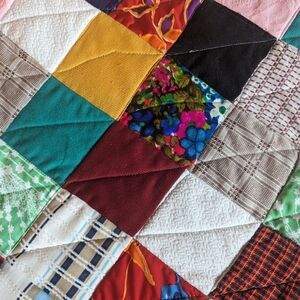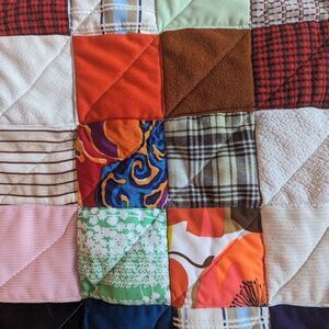 Awesome and groovy patchwork quilt with fantastic prints 🌻