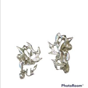 These vintage BSK silvertone earrings are a leaf design and embellished with mini faux pearls. Clip on. Marked Euc