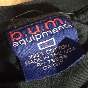 Vintage BUM Equipment Spell Out Logo T-Shirt, Made in USA, Size Large - Measures p2p=24" Length=31" - Excellent Condition, No Flaws