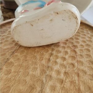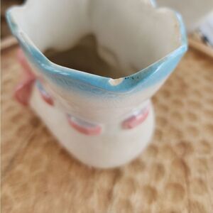Cute little vintage Baby booty that I used for a vintage themed Baby Shower. Place a plant inside for decor on your food table, or clean and put party pics or utensils in. Always a sweet gift with a plant, for the Mommy to be! Or she can use it the nursery for storing Baby necessities .