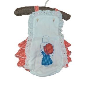 Vintage Baby Eyelet Embroidered Ruffle Bottom Bubble Romper 9m