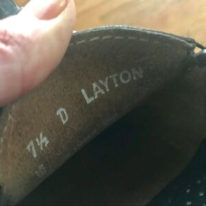 Nice condition overall but there is hole on the sole of one shoe. Sold as is. Marked size 7 1/2 D. Made by GH Bass