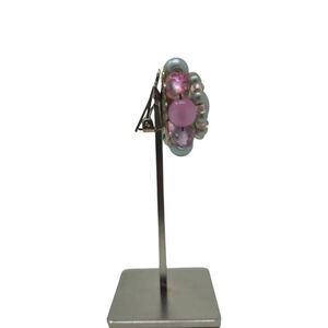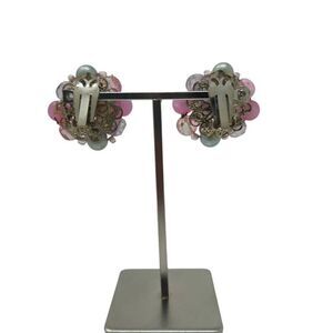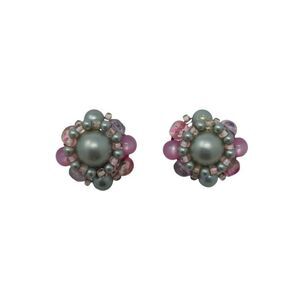 These delicate earrings feature a central faux pearl surrounded by pastel pink and blue bead accents, arranged in a floral-inspired cluster. Hand-beaded with care, they offer a soft, feminine aesthetic perfect for vintage style lovers. Ideal for adding a touch of elegance to both casual and formal outfits.