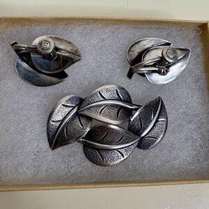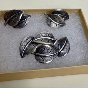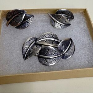 Vintage Beau Silver Leaf Brooch and Earring Set