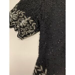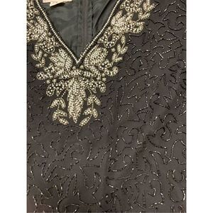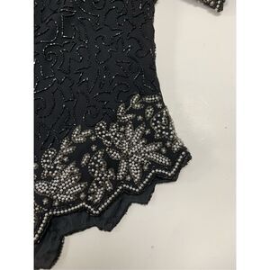 Ladies super cute beautiful black and silver beaded embroidered vintage blouse by Laurence Kazar. Excellent vintage condition. Ladies size large. Zipper closure.