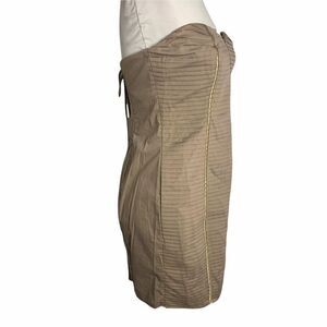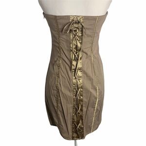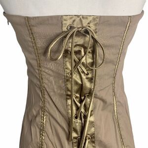 Vintage Bebe Pleated Lace Up Corset Mini Dress M Taupe Adjustable Straps NEW