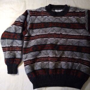 Vintage United Colors of Benetton Aztec Pattern Striped Crewneck Wool Sweater, Made in Italy, Size Small (Estimate - No Size Tag) - Measures p2p=20" Length=22" - Excellent Condition, No Flaws