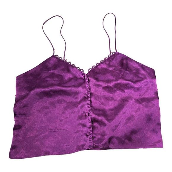 Very very gently used and in excellent condition. Beautiful Vintage Camisole Cropped tank top with buttons. Shiny and sexy with a soft satin touch. Buttons are fully functional and can be worn alone or as an accessory with buttons open. Spaghetti straps are long. See pictures for measurements of pit to pit and total length of the top including the straps.