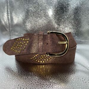 Vintage Betsey Johnson 90's Metallic Leather Studded Belt Medium Pink Gold Tone