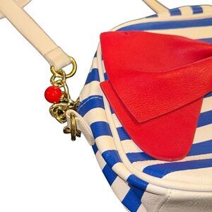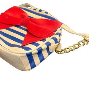Vintage Betsey Johnson Red Bow Crossbody Handbag/Purse Blue & White Cherries