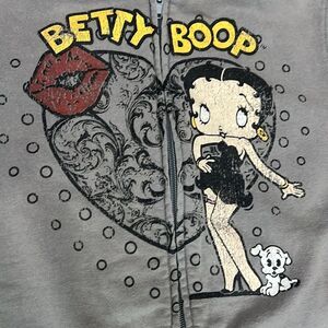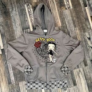 🔥🔥Vintage Betty Boop Kids Gray Zip-Up Hoodie Junior Size 11/13 - EXCELLENT