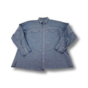 Mens blue chambray button down western style button down vintage top by Big Mac. Excellent vintage condition. Mens size XL Tall.