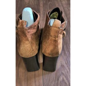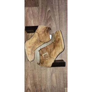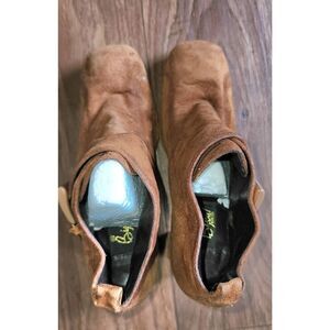 Cognac color leather and suede square toe and heel ankle boots ankle buckle access