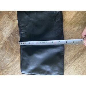 Vintage Black Genuine Leather Chevron Foldover Clutch Bag 13.5” Made in China